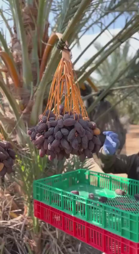 Le "régime" est une grosse branche sur laquelle les dattes sont encore attachées. Idéal pour les grandes tablées, les cadeaux prestigieux ou comme pièce maîtresse décorative. Chaque régime raconte une histoire de récolte, de soleil et de terroir.